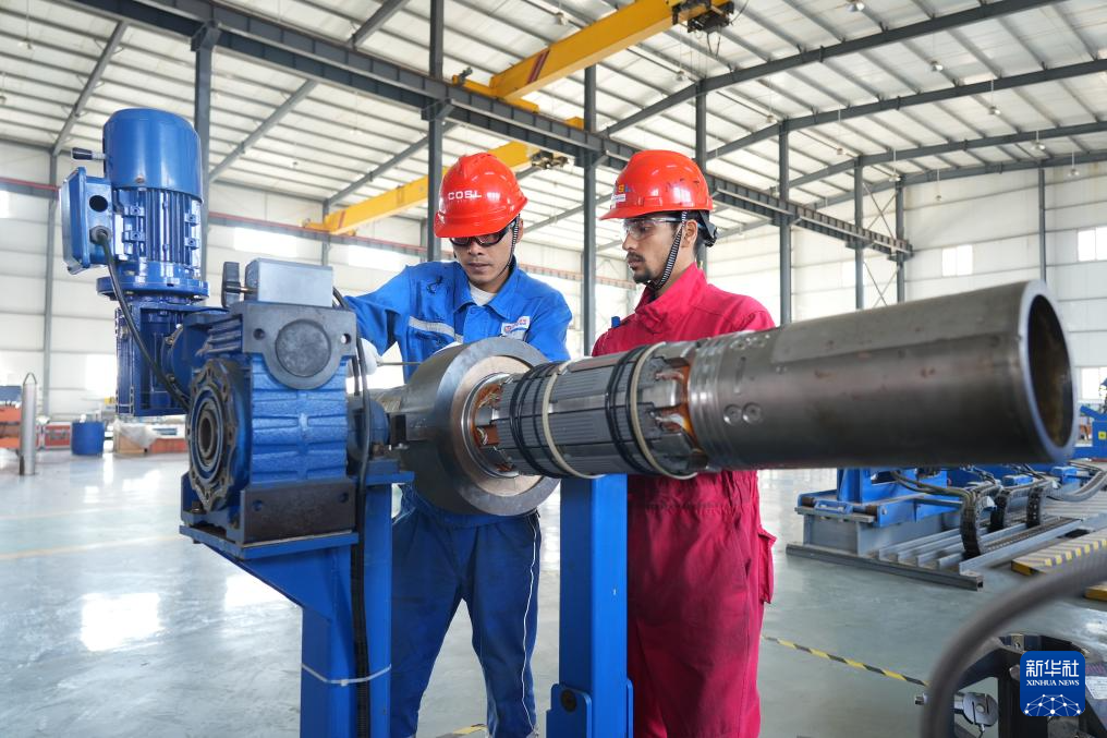 11月29日,中海油服技术人员在维保车间进行“璇玑”钻井设备常规维保。新华社记者 段敏夫 摄
