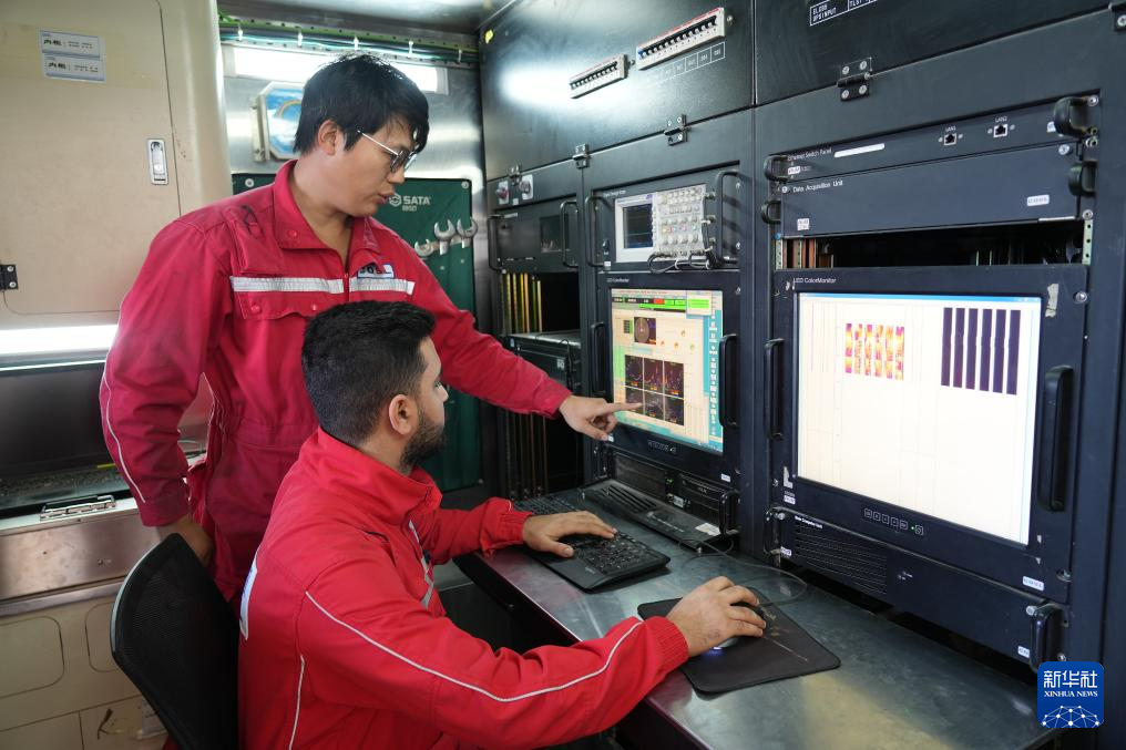 11月28日,在伊拉克米桑省,中海油服技术人员使用“璇玥”系统开展测井作业。新华社记者 段敏夫 摄